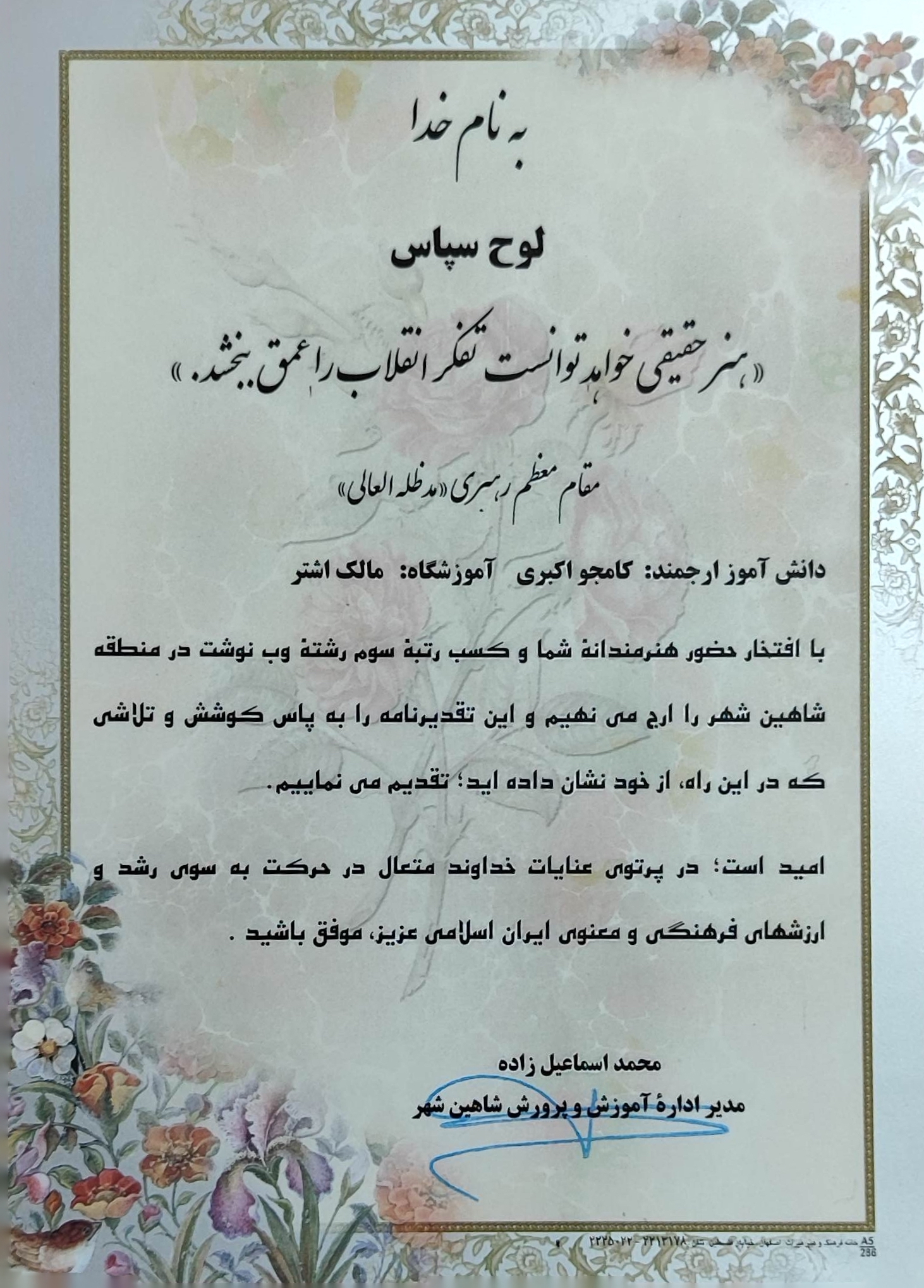متولد ۶ مهر ۱۳۸۲ هستم؛ نویسنده کتاب «زیرزمین مرگ» و طراح گرافیک و وب. فعالیت خود را از سال ۱۳۸۶ با یادگیری کامپیوتر آغاز کردم. در دوران دانشآموزی، در سیوپنجمین دوره مسابقات فرهنگی و هنری کشور (سال تحصیلی ۱۳۹۵–۱۳۹۶) موفق به کسب مقام اول رشته وبلاگنویسی شدم و در دوره بعدی همین مسابقات نیز مقام سوم وبلاگنویسی در منطقه شاهینشهر را به دست آوردم.نوشتن برای من از دوران دبستان و از کلاس چهارم آغاز شد؛ زمانی که ایده داستان «زیرزمین مرگ» شکل گرفت. این داستان در همان سالها با استقبال قابلتوجه دانشآموزان و معلمان روبهرو شد و همین بازخوردها انگیزه ادامه مسیر را برایم تقویت کرد. سرانجام پس از سالها، در سال ۱۴۰۲ توانستم کتاب «زیرزمین مرگ» را بهصورت کامل و ویرایشی تازه به پایان و از طریق انتشارات متخصصان به چاپ برسانم.