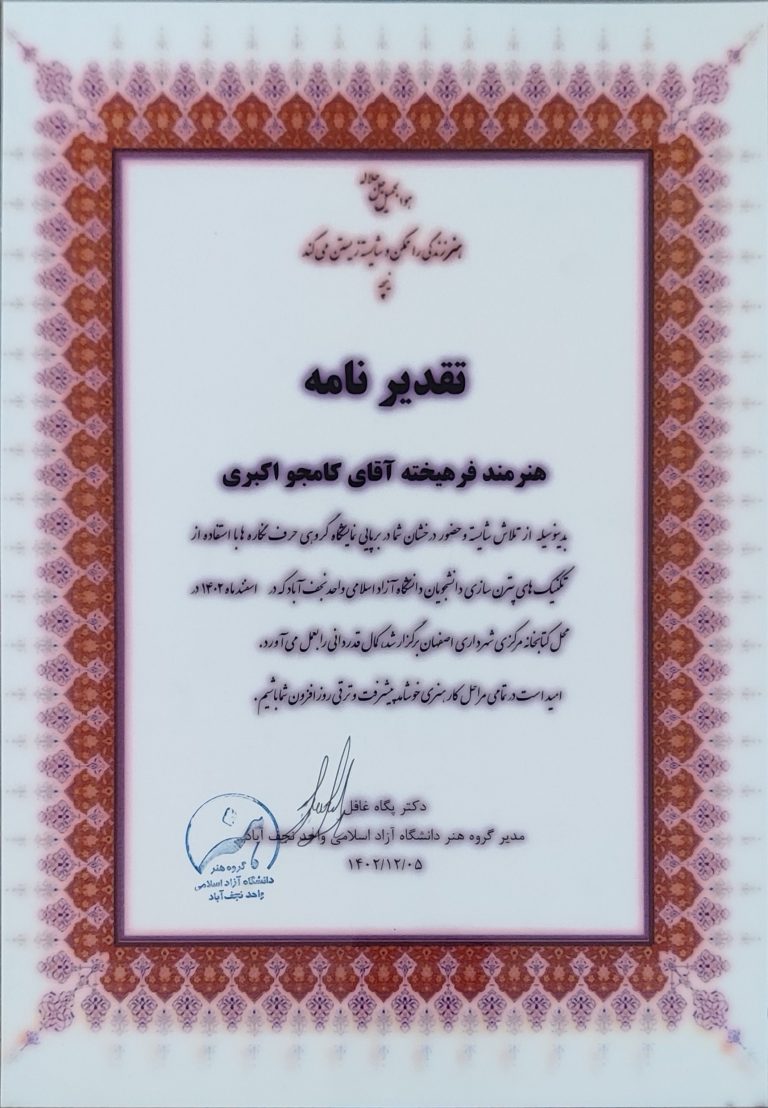 شرکت در دوره ICDL و دریافت مدرک از سازمان آموزش فنی حرفه ای کشور.